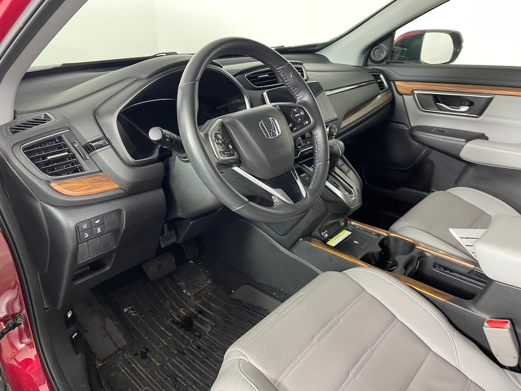 The 2022 Honda CR-V Touring is the range-topping trim of Hondas popular compact SUV, offering a blend of practicality, comfort, and tech. Its powered by a 1.5-liter turbocharged four-cylinder engine with around 190 hp paired to a CVT, and real-time all-wheel drive is available, giving it competent performance for daily driving and all-weather traction. The Touring trim adds premium exterior touches like 19-inch alloy wheels, full LED lighting, roof rails, and a hands-free power tailgate, along with a high-quality interior featuring leather-trimmed heated seats, a heated leather-wrapped steering wheel, dual-zone climate control, and a robust 9-speaker audio system.